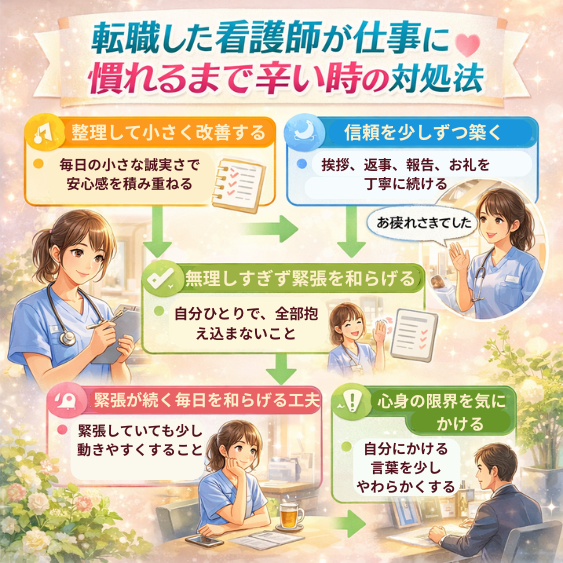 - 転職した看護師が仕事に慣れるまで辛いのは、仕事のやり方だけでなく、人間関係や職場の空気まで変わるからです。