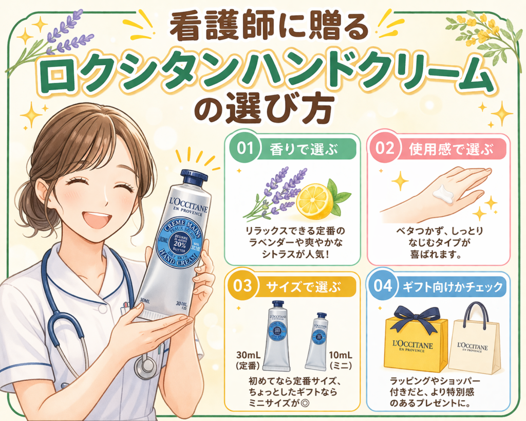 ロクシタンのプレゼントは、忙しい看護師さんの心をそっと癒やす“ご褒美ギフト”になります。